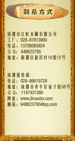 版权所有:成都市江虹木雕有限公司 合作电话:13708063824 技术支持:企商动力 蜀ICP备11024021号-1