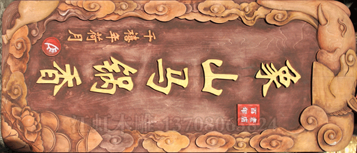 ,使其艺术立体化。本店采用红木,楠木,榆木等。绝不使用拼板,订制木匾皆免运费,并附加狮座彩带,我们保证超低价,且三天交货。如果您有任何的疑问及特殊的的需求,欢迎您来电